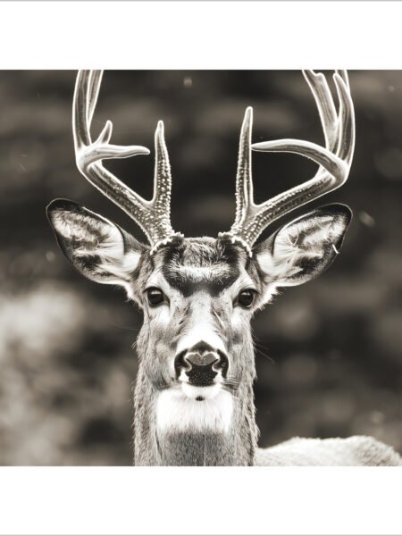 This image showcases a majestic stag, exuding tranquility and grandeur. The deer's eyes convey wisdom and determination, offering a sense of being gently embraced by nature.