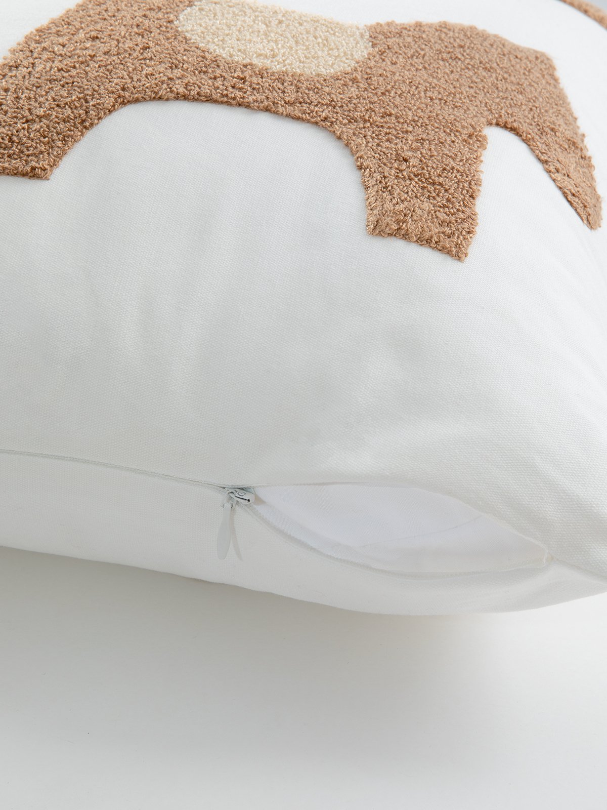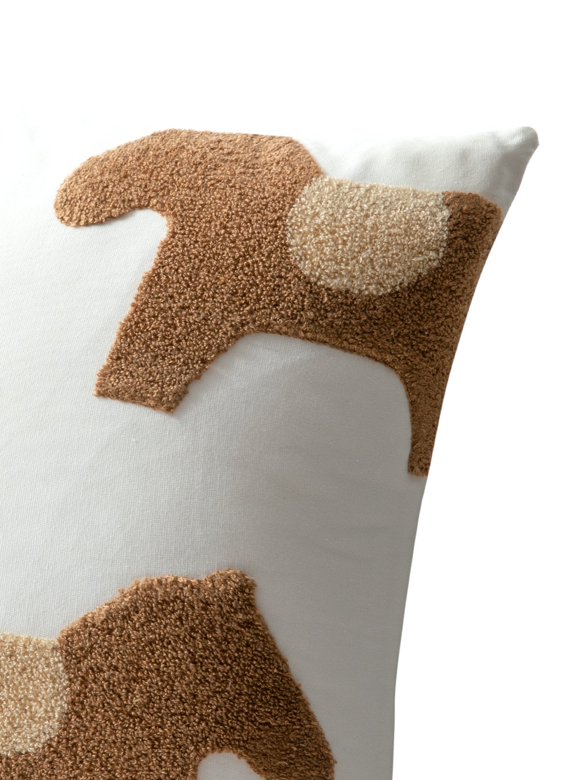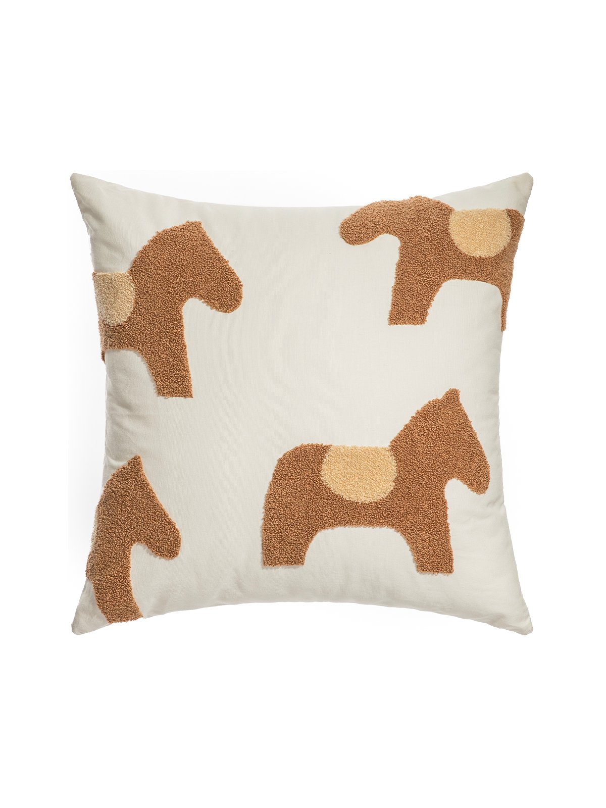 A hand-embroidered brown pony pattern on a white background adds a touch of liveliness to the living space. The cotton fabric is brushed for a soft touch. With hidden zipper, easy to remove and wash.