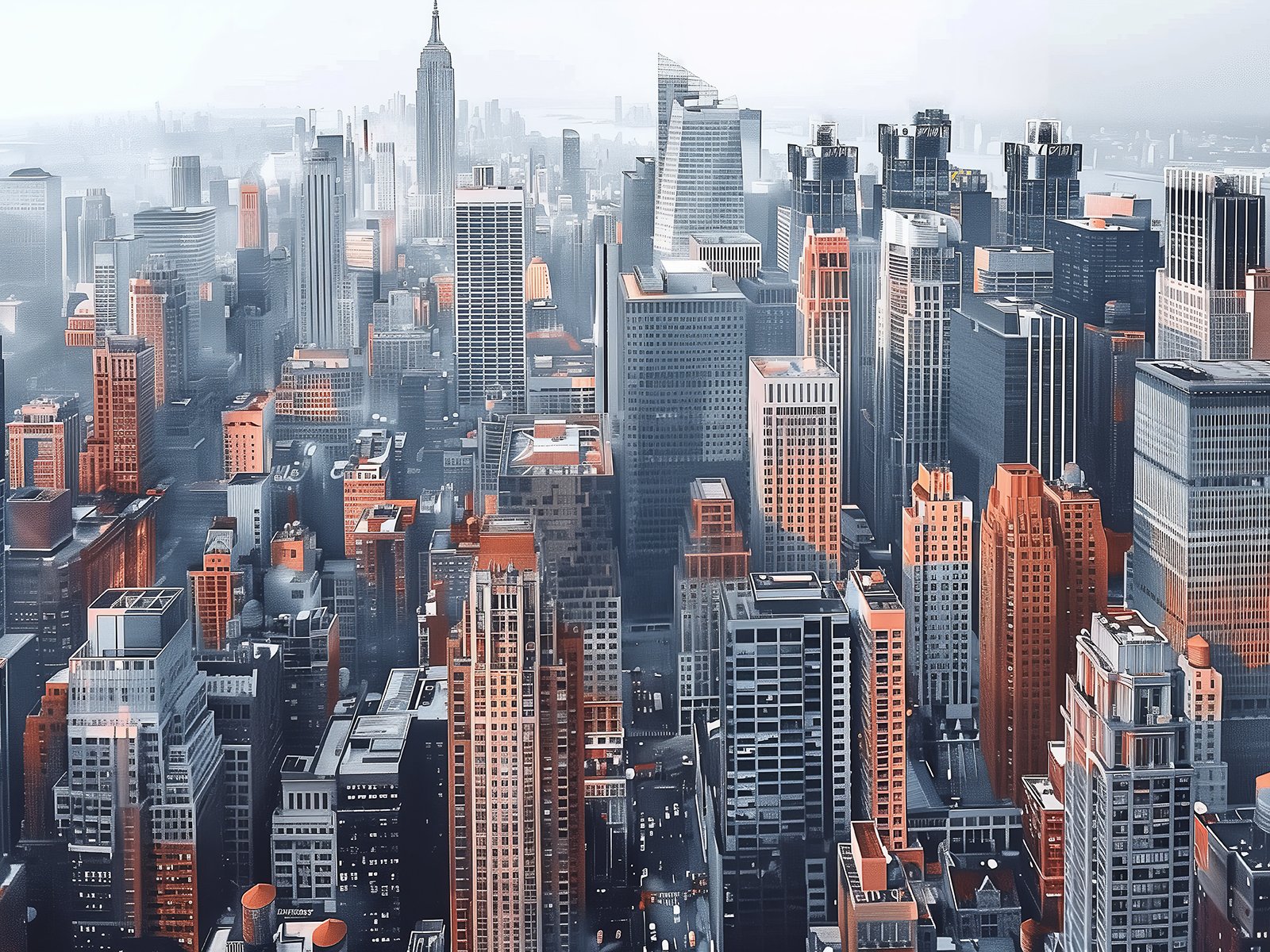 In the morning mist, the skyscrapers of the city stand like a steel forest. Sunlight penetrates the fog, casting a glow on the buildings, creating a picture of the city at dawn. In this moment, the city slowly awakens in tranquility, filled with new hope and vitality.
