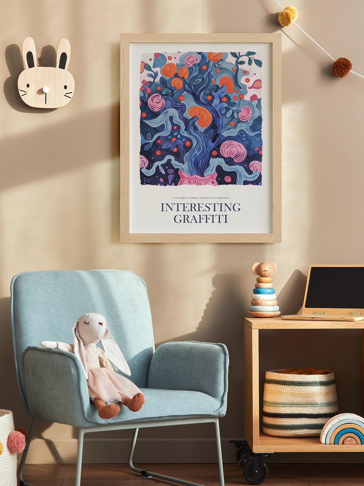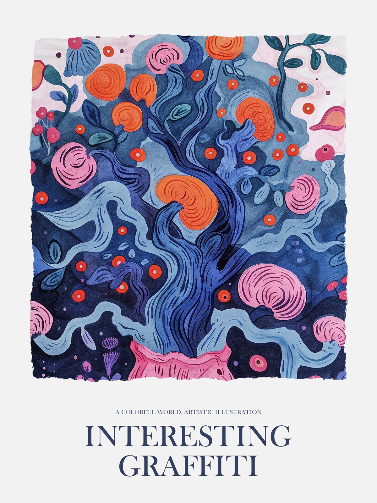 This artwork uses rich colors and flowing lines to depict a fantastical garden. The contrast between blue and orange creates a mysterious and vibrant atmosphere. Various shapes of flowers and leaves intertwine, as if telling a beautiful dream.