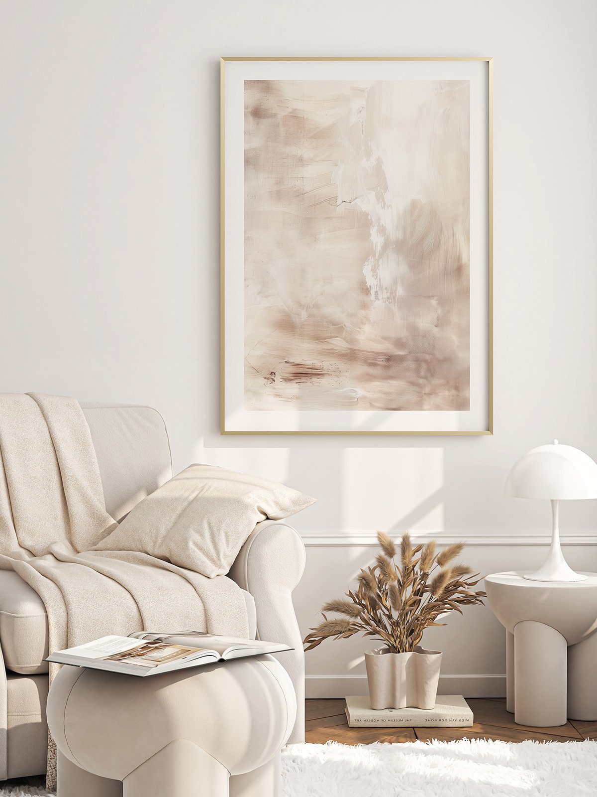 This abstract painting uses soft light brown, white and gray interweaving, and the brushstrokes are free and uninhibited. It is like a dream, hazy and dreamy, showing the artist’s inner thoughts and emotions. Everyone can find their own interpretation here.