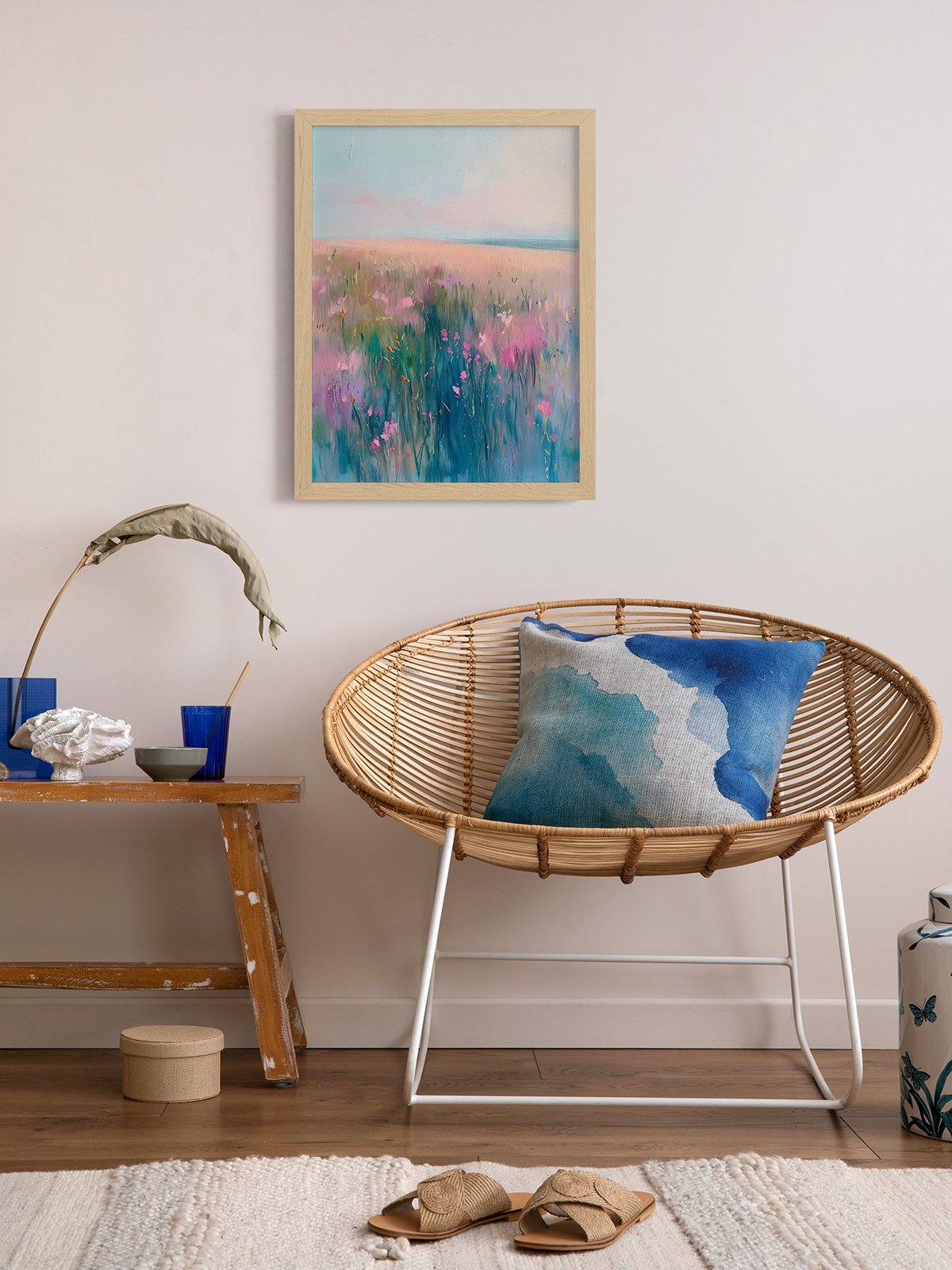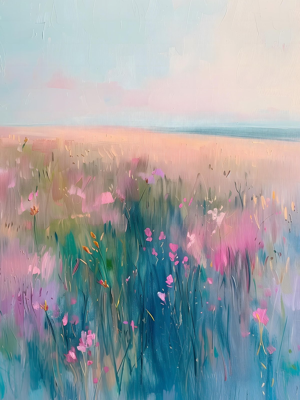 The painting showcases a dreamlike sea of flowers, with colorful and gentle hues, evoking a sense of tranquility and beauty. The flowers, each with unique shapes, seem to sway gently in the breeze, whispering the mysteries and charm of nature. The entire artwork is filled with vitality, transporting the viewer to a magical and romantic world of flowers.
