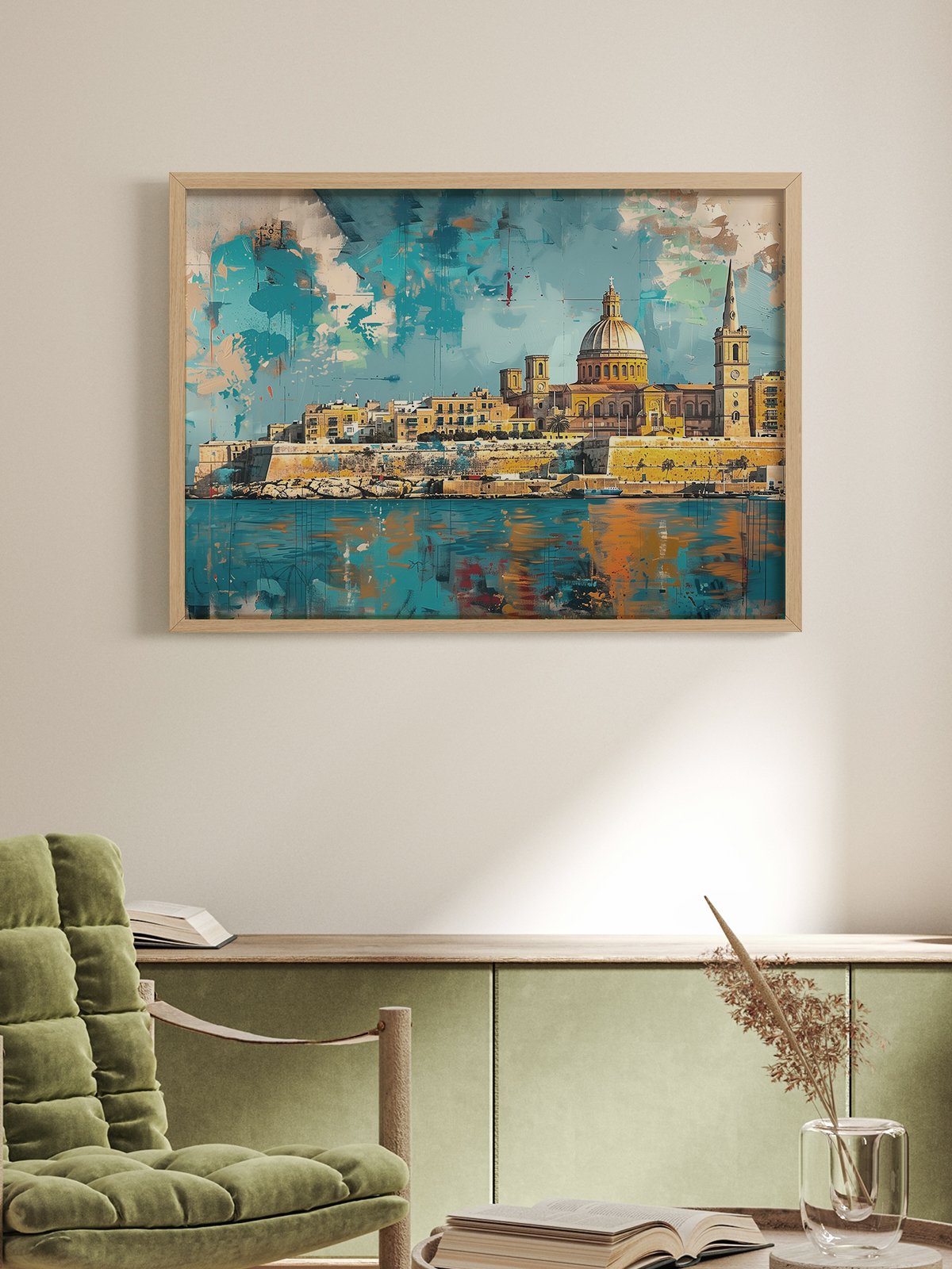 This piece employs a unique collage and graffiti style to depict the spectacular Maltese coastline. In the artwork, the domed church and spires stand out amidst the chaotic colors, symbolizing Malta’s rich historical and cultural heritage. The fragmented colors layered together add a contemporary twist to the traditional landscape of this ancient city. Through this visual collision, the artwork prompts viewers to reflect on the relationship between tradition and modernity in Malta, while showcasing the island’s unique artistic beauty.