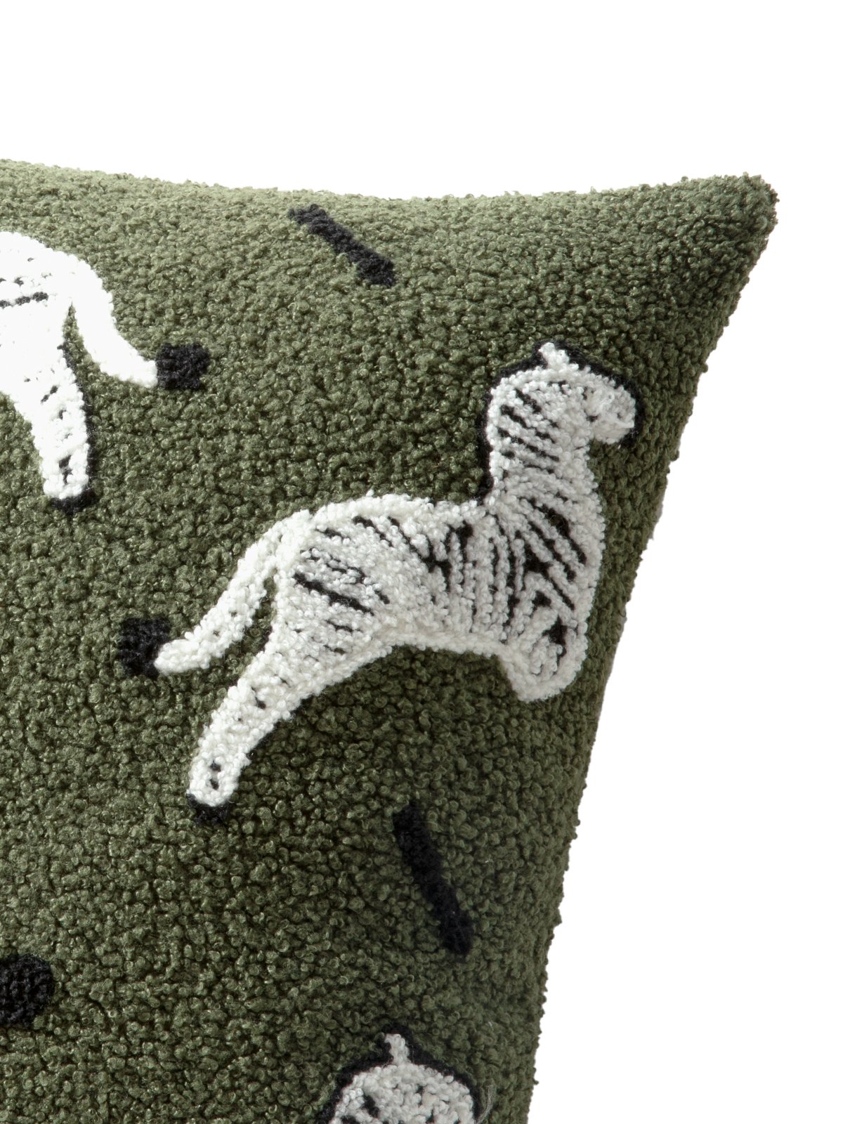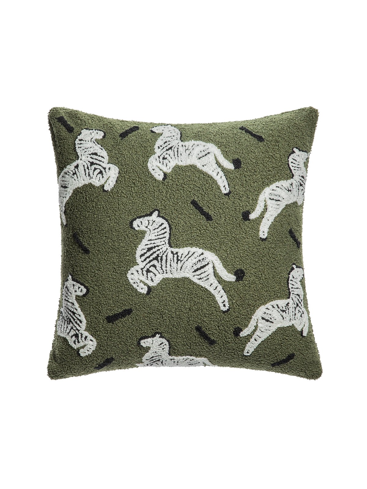 The British-style elegant medieval green color scheme is decorated with a hand-embroidered energetic running zebra pattern, which is full of vitality and injects free will and a strong artistic atmosphere into the home. Made of 100% recycled polyester, non-pilling, colorfast and durable. With hidden zipper, easy to remove and wash.