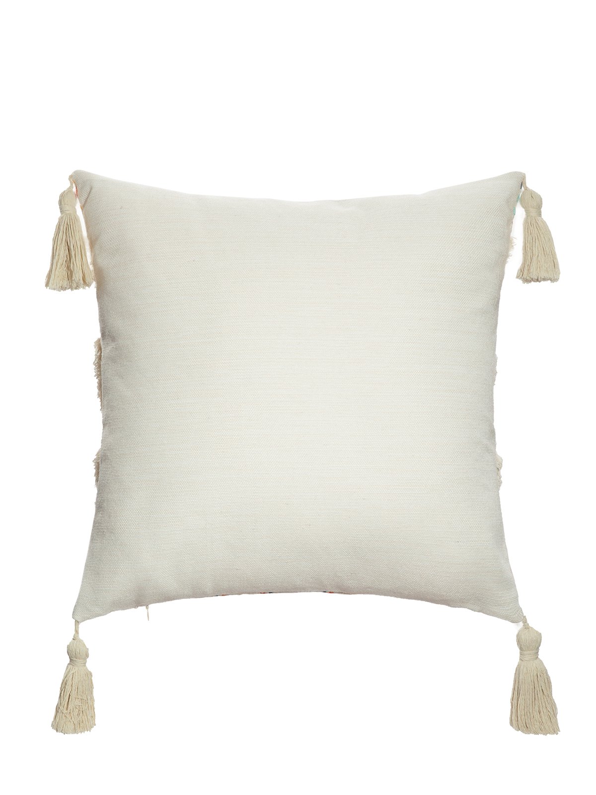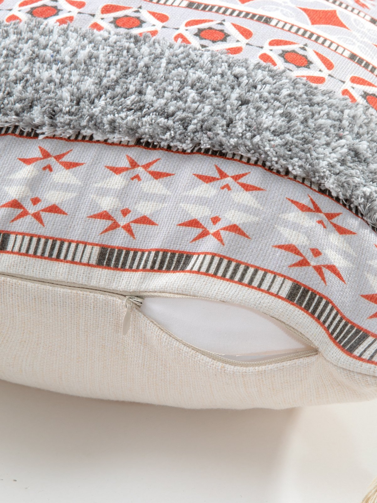 The strong bohemian style brings a free and romantic atmosphere to the home environment. The gray and white stripes are embroidered with creative hoops to create a more three-dimensional concave and convex look. The tufting process neutralizes the slightly rough feel of the canvas fabric. Featuring lively tassels on the sides. Concealed zipper, easy to remove and wash.