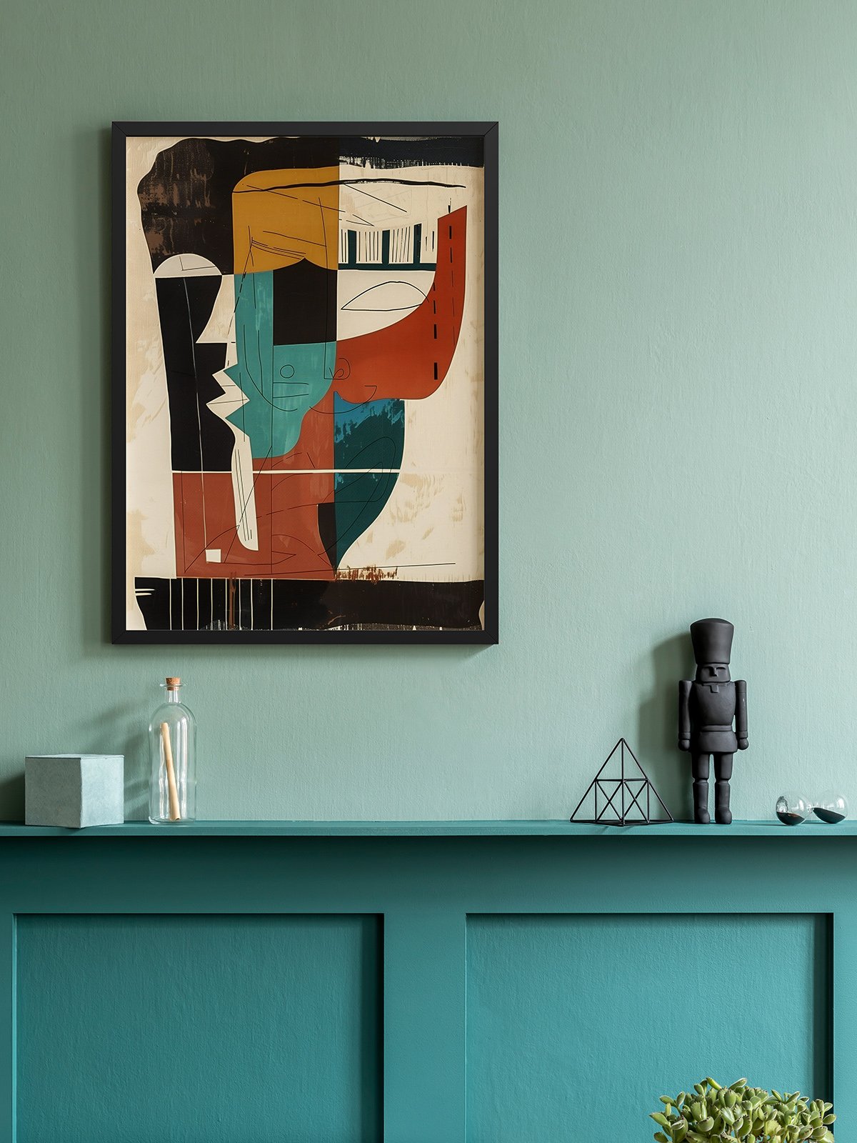 This abstract artwork employs a rich palette of colors and geometric shapes to create a complex and multi-layered composition. The contrast between dark and bright tones, along with fluid lines, evokes a sense of visual intricacy. Each color block and line seems to narrate an independent story, intertwined to form a thought-provoking piece of art. The entire image is filled with a dynamic and static contrast, showcasing the artist’s unique interpretation of the inner world.