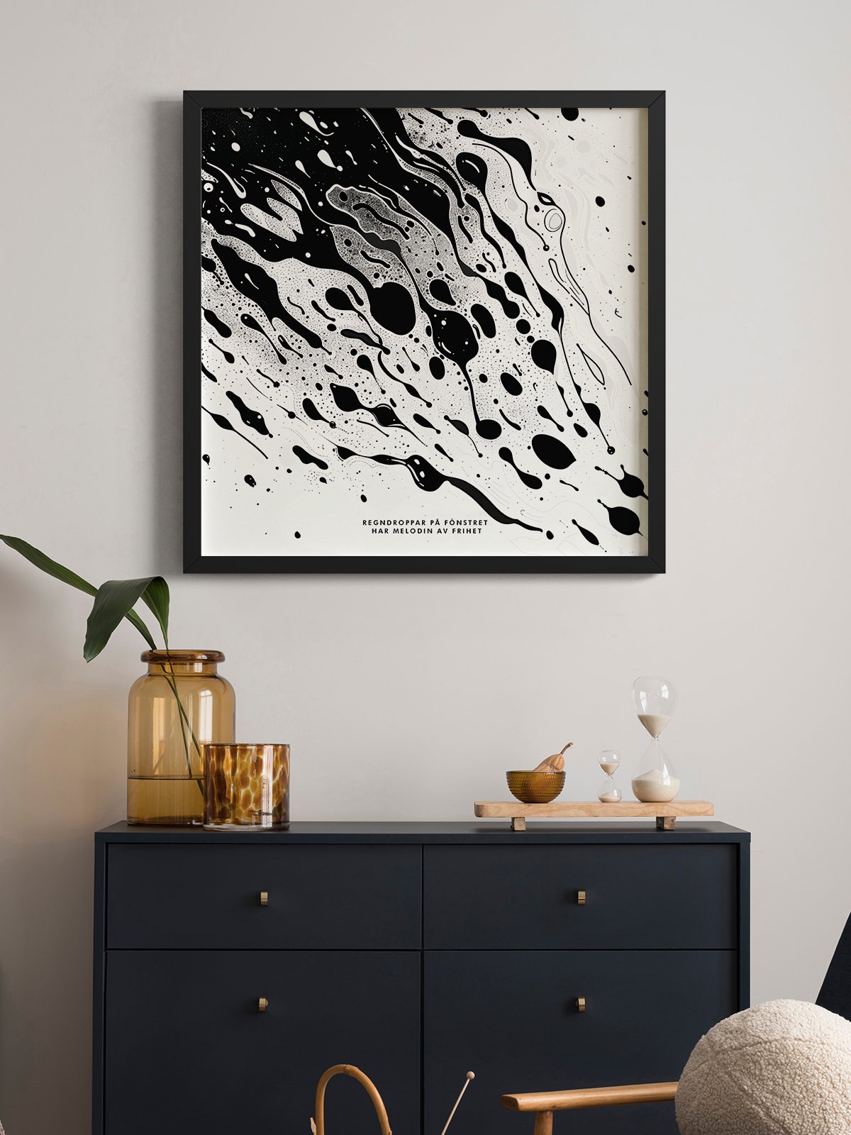 «Ripples of Chaos» is an illustration characterized by a strong contrast of black and white, full of dynamism and tension. The artwork creates an abstract and energetic visual effect through flowing shapes and splattering techniques in black and white. Each drop of black ink seems to spread, forming endless ripples, symbolizing order and beauty within chaos. This piece is imbued with the essence of modern art, provoking deep contemplation.