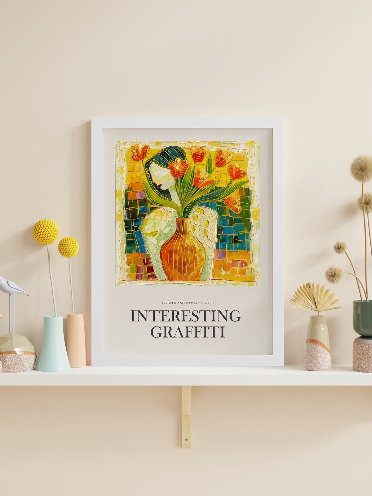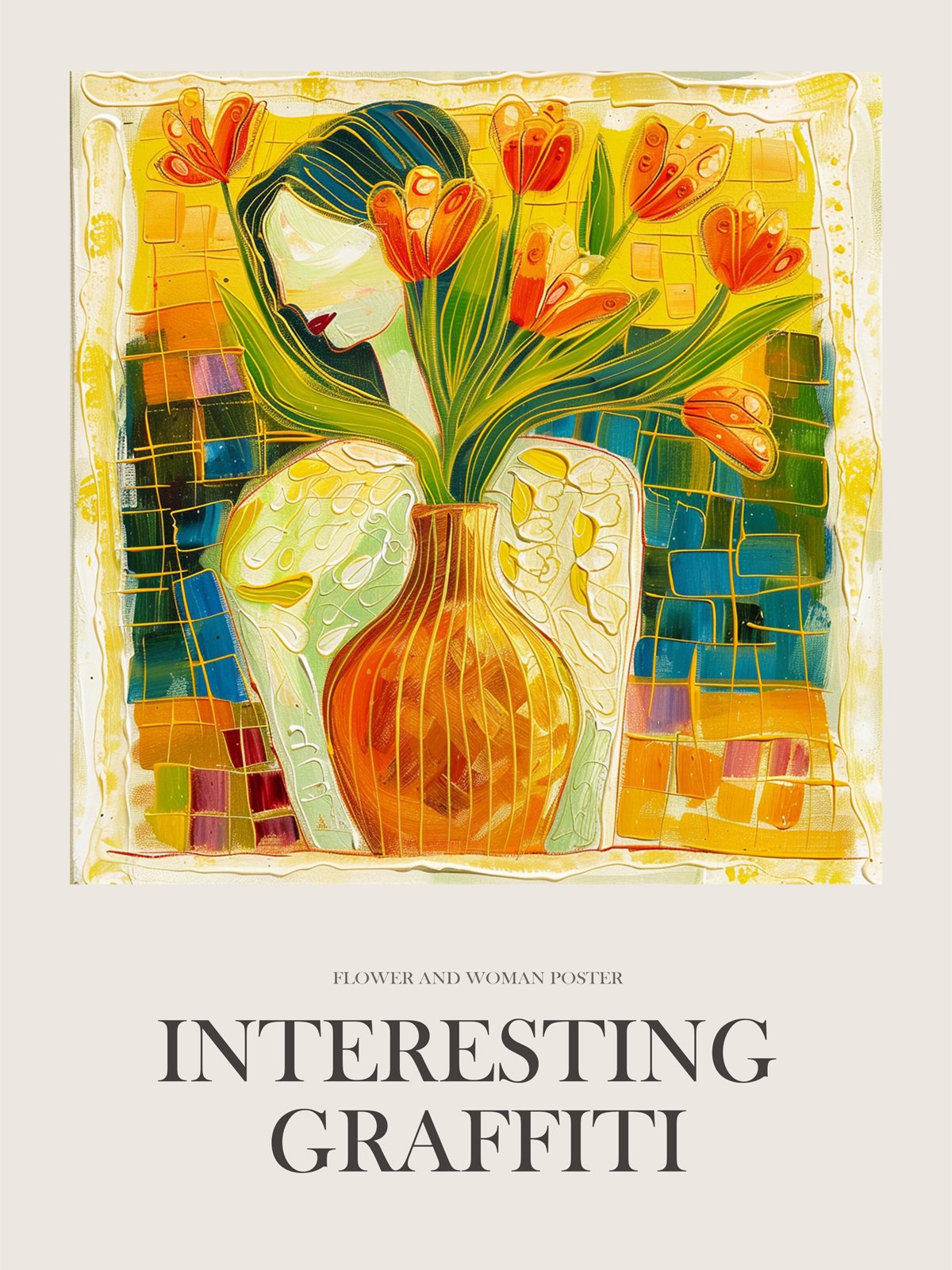 This painting features a woman and a bouquet of flowers in an abstract style with bright and vivid colors. The artwork is full of vitality and artistic flair, evoking a sense of warmth and joy, as if you can feel the breath of spring and the power of life.