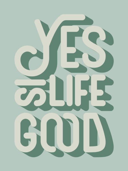 The quote "Yes, Life Is Good" is printed on a green background. Inspirational quotes can be the finishing touch on your gallery wall, conveying a positive attitude towards life while also reflecting your personal style!